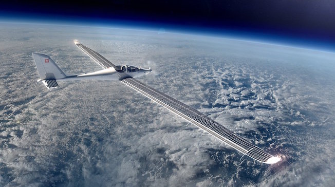 El aventurero suizo Raphaël Domjan, quien navegó alrededor del mundo en el barco PlanetSolar, alimentado con energía del astro rey, presentó en el aeródromo suizo de Payerne el pasado 7 de diciembre un pequeño avión solar de dos asientos con el que espera convertirse en el primer piloto en volar en la estratosfera. Los vuelos de prueba comenzarán en febrero próximo.