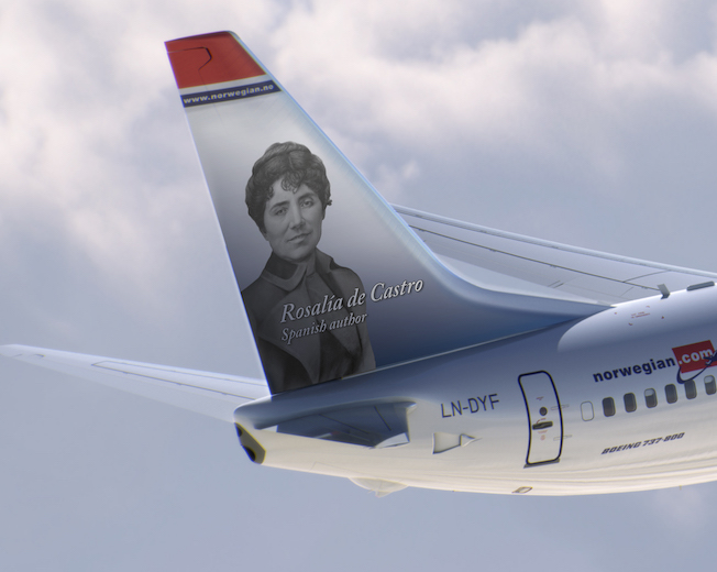 «La incorporación de la figura de Rosalía de Castro a la flota de Norwegian quiere reivindicar su doble papel pionero, en la recuperación del gallego como lengua de cultura y su papel como matriarca de las letras gallegas por un lado, y en la emancipación de la mujer por el otro», afirma Miguel Urresti, responsable de Marketing de Norwegian en España. «En ambos aspectos, Rosalía mostró la senda que multitud de mujeres y hombres han seguido a lo largo del últimos siglo y medio. Ésta es, además, nuestra aportación al 180 aniversario del nacimiento de la autor».