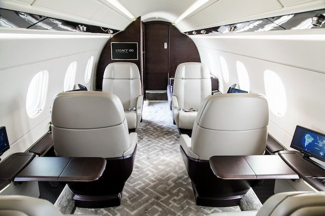 El Legacy 450 tiene un alcance máximo de 5.371 km. con cuagro pasajeros y reservas NBAA IFR. Puede velocidad a velocidades de hasta Mach 0,83 y subir hasta los 45.000 pies.