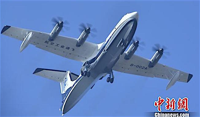 El mayor avión anfibio del mundo, el AG600, realizó su primer vuelo el día de hoy. Desarrollado por la Corporación de la Industria de la Aviación de China (AVIC), mide 39,6 metros de longitud y 38,8 de envergadura, similar en tamaño a un 737. pic.twitter.com/mmtyBen8iz