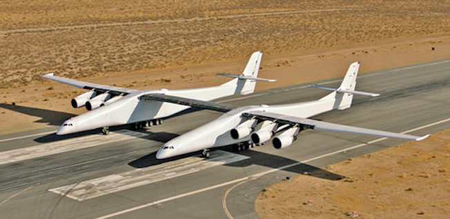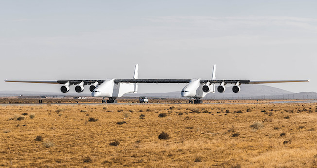El avión gigante Stratolaunch ha dado esta semana un nuevo paso en el proceso de puesta en vuelo y certificación, al realizar movimientos sobre la pista del desierto de Mojave (California; EEUU), donde tiene su sede la empresa que impulsa su cnstrucción, Stratolaunch Systems Corporation. El avión equipa seis motores Pratt & Whitney, tiene doble fuselaje, unido por el ala y está pensado para lanzar cohetes al espacio, que colgarán del centro del ala.