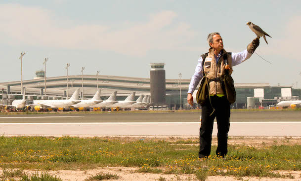 La cetrería es el medio más ecológico y eficaz para que las aves eviten el cielo del Aeropuerto de Barcelona-El Prat porque, a diferencia de otros métodos probados anteriormente, las aves nunca se adaptan y siempre se alejan ante la presencia de halcones.