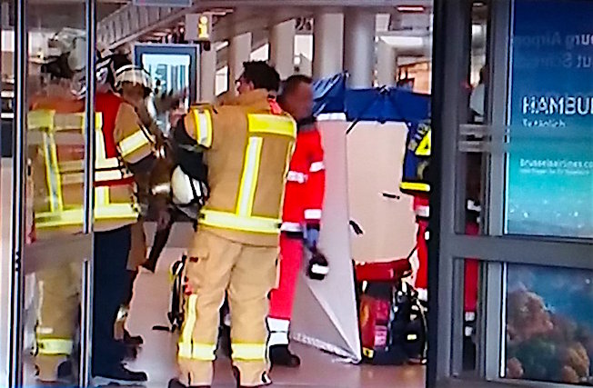 El aeropuerto de Hamburgo es el quinto más grande de Alemania, con más de un millón de pasajeros al mes. En 2016, más de 16 millones de pasajeros pasaron por él, con un tráfico aéreo de 161.000 vuelos. Allí operan líneas como Eurowings, Lufthansa, Easyjet, Air Berlin y Ryanair. Cuenta con dos terminales y, entre medias, se encuentra el edificio Airport Plaza, donde se hallan la mayoría de las tiendas y los controles de seguridad.