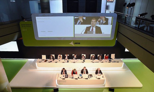 Aena celebró ayer en el Aeropuerto Adolfo Suárez Madrid-Barajas su tercera Junta de Accionistas, desde que salió a Bolsa en febrero de 2015. En 2016 Aena tuvo un comportamiento muy positivo, que se refleja en el beneficio neto, que ascendió a 1.164 millones de euros, casi un 40% superior al obtenido en 2015.