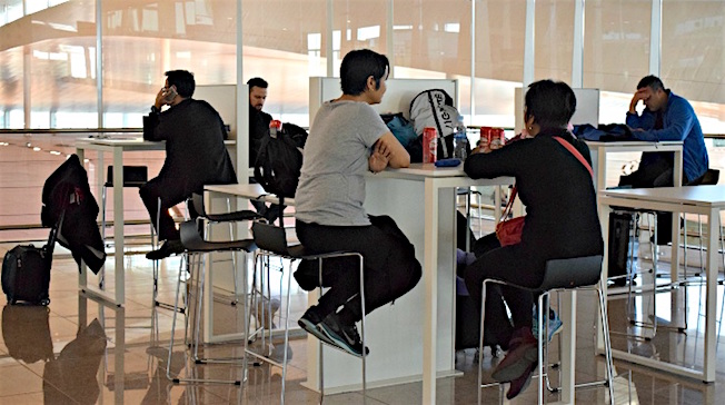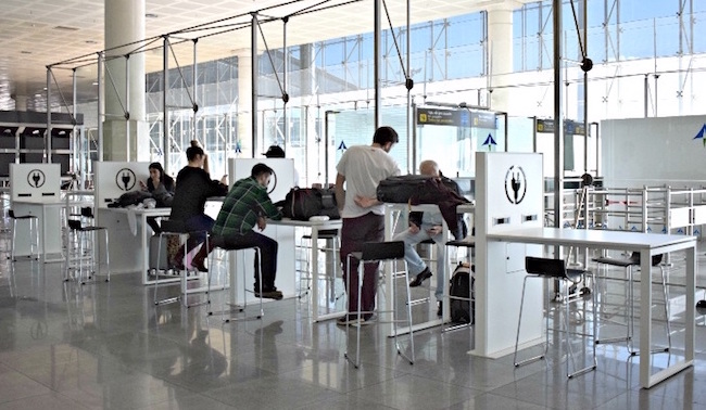 El Aeropuerto de Barcelona-El Prat ha instalado cinco nuevas áreas de trabajo destinadas a pasajeros: una en la zona restringida de vuelos internacionales de la Terminal T1, otra junto a las cintas de recogida de equipaje de la misma terminal, dos en la Terminal T2 -junto a las puertas R/S y W/Y- y otra más en el Puente Aéreo.