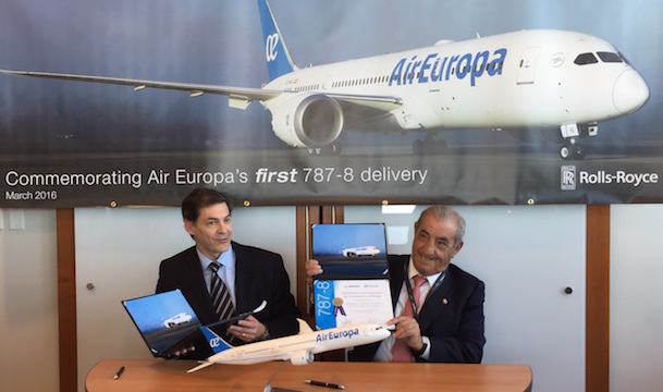 Por su parte, el presidente y consejero delegado de Boeing Commercial Airplanes, Ray Conner, declaró tras la rúbrica que «nos complace entregar el primer 787 Dreamliner a nuestros socios de Air Europa. Este avión es una excelente adquisición para su flota ya que les ofrece la posibilidad de ampliar su red de largo radio hasta el continente americano y más allá mientras ofrece a los pasajeros una comodidad de calidad superior».