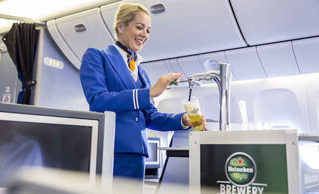 KLM Royal Dutch Airlines ha lanzado el primer trolley de cerveza a bordo del vuelo KL735, de Amsterdam a Curaçao. Ahora, la aerolínea puede servir cerveza del barril Heineken a los clientes de World Business Class.