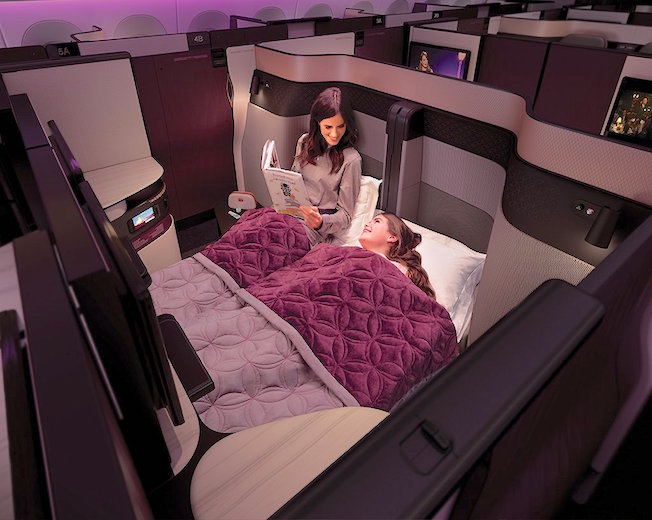 QSuite se caracteriza por disponer por primera vez de una cama doble, pionera en la Clase Business, con paneles de privacidad que separan y permiten a los pasajeros de asientos contiguos crear su propia habitación. Los paneles regulables y los monitores de televisión móviles en el centro de los cuatro asientos permiten a amigos, compañeros o familiares viajar juntos y transformar el espacio en una suite privada, para poder trabajar, comer o socializarse. Estas nuevas características proporcionan la mejor experiencia de viaje personalizada, permitiendo al pasajero crear un ambiente privado y adecuado a sus necesidades.