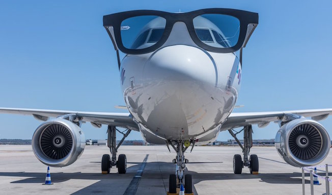 Para publicitar el evento, se ha colocado en la parte delantera de un A320 unas gafas de sol tamaño XXL.