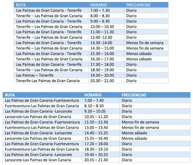 Por lo que respecta a la conexión entre Gran Canaria y Fuerteventura, Air Europa Express operará inicialmente tres vuelos de lunes a viernes y dos en fin de semana; los mismos que volará entre Gran Canaria y Lanzarote, a excepción de los domingos que, en esta ruta, operará tres vuelos.
