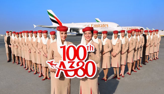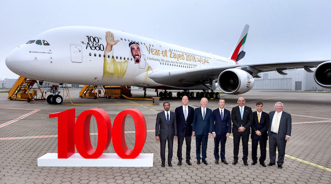 Emirates ha celebrado hoy la entrega de su centésimo (*) avión Airbus A380 en una ceremonia especial con Airbus en el centro de entrega del fabricante en Hamburgo, Alemania.