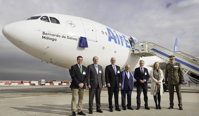 La compañía aérea Air Europa ha homenajeado hoy al militar y político malagueño Bernardo de Gálvez, bautizando con su nombre a uno de los aviones Airbus 330 de su flota, una nave que cubrirá el trayecto entre Málaga y Nueva York.