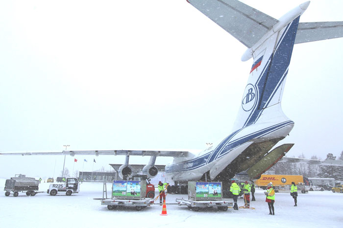 La empresa DHL se encargó el pasado 17 de enero se efectuar un encargo muy especial. Se responsabilizó de trasladar dos osos panda desde Chengdu (China) a Ahtari, en Finlandia, con aterrizaje en el aeropuerto de Helsinki. Un trayecto de 6.500 km que se encargó de realizar un Ilyushin 76.