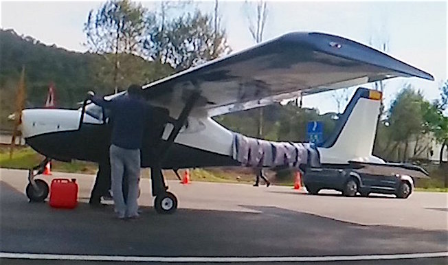 El avión biplaza, en el área de servicio de la autopista / Vídeo TV3