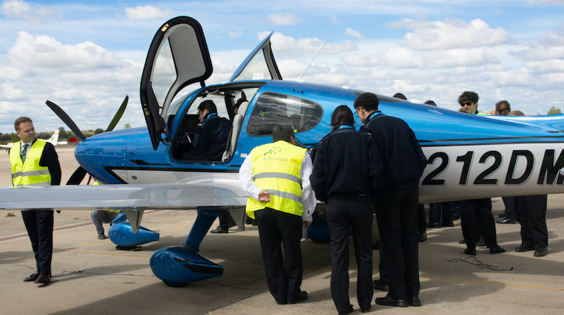 La escuela de pilotos Adventia, que tiene su sede en Salamanca, ha celebrado recientemente el acto de presentación de uno de los nuevos aviones Cirrus SR20 G7 que se incorpora a su flota.