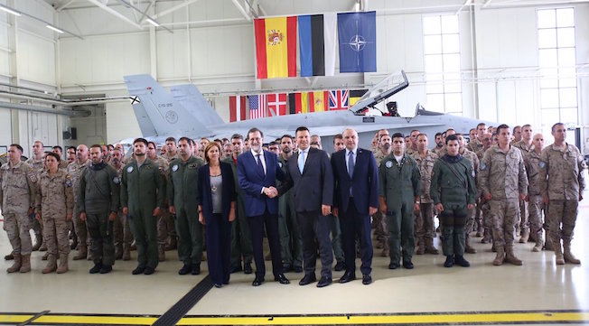 El jefe del Ejecutivo, que ha viajado junto a la ministra de Defensa, María Dolores de Cospedal, ha reconocido la labor de las tropas españolas que operan en Estonia con la misión de proteger y reforzar su espacio aéreo, de acuerdo con los compromisos adquiridos en el marco de la OTAN.