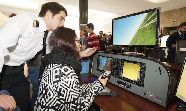 En el ámbito de los simuladores, estos se han analizado como herramienta clave para la formación en la instrucción de las tripulaciones aéreas. En una de las aulas se ha recreado el centro de control de tránsito aéreo de un aeropuerto, con control de superficie, torre, radares…. Una treintena de miembros de la asociación IVAO, impulsora del evento, actuando unos como pilotos y otros como controladores, han realizado cientos de operaciones virtuales con un realismo espectacular. Los visitantes han podido conocer así está afición por la simulación aérea que está muy extendida en nuestro país.