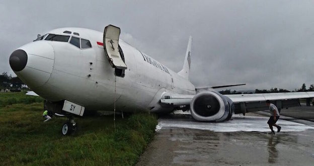 Un Boeing 737-300F de la compañía Trigana Air ha aterrizado hoy en el aeropuerto de Wamena, en Indonesia, con el tren de aterrizaje principal plegado, sin que se produjeran heridos. El avión se fabricó en 1986 y su matrículaes PK-YSY.