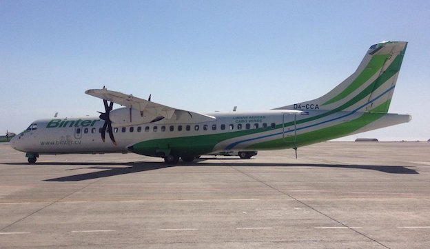 El pasado 28 de septiembre despegó del Aeropuerto de Gran Canaria uno de los aviones que Binter ha destinado a Cabo Verde para operar conexiones interinsulares en el país africano. Se trata de una aeronave modelo ATR 72 500, que luce la matrícula caboverdiana D4-CCA.