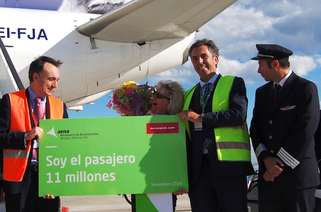 El Aeropuerto de Alicante-Elche ha recibido hoy al pasajero 11 millones, cifra que alcanza por primera vez en un año a lo largo de su historia y a mes y medio de finalizar el mismo.