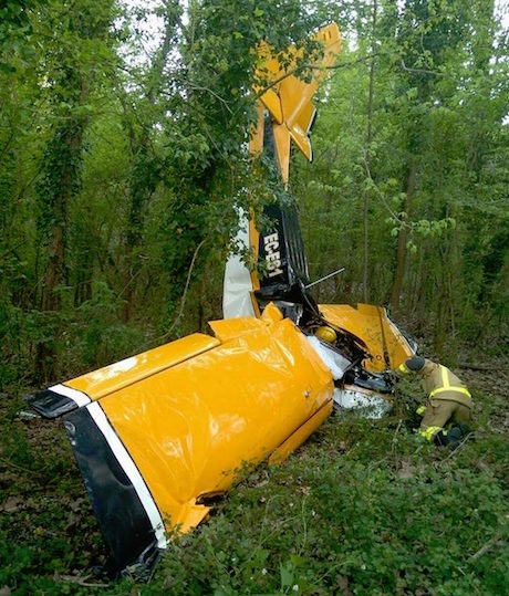 Los dos ocupantes del ultraligero resultaron ayer heridos cuando el aparato, un ICP Savannah Rotax 912, con matrícula EC-ES1, cayó en una zona boscosa, en el municipio gerundense de Sant Feliu de Buixalleu, en el que hay un campo de vuelo, cercano al municipio de Hostalric.