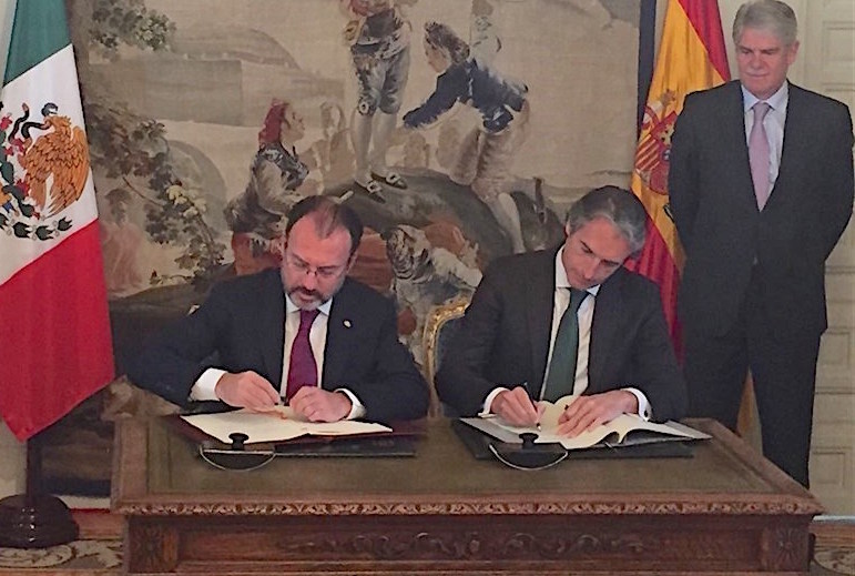El ministro de Fomento, Iñigo de la Serna, y el canciller de México, Luis Videgaray, han firmado hoy el Convenio sobre Transporte Aéreo entre el Reino de España y los Estados Unidos Mexicanos.