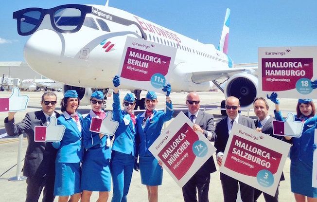 Eurowings, compañía de bajo coste del grupo Lufthansa, inauguró hoy su primera base fuera de Alemania, en concreto en Palma de Mallorca, con un vuelo procedente de Austria. La compañía estaciona por ahora en el aeropuerto balear cuatro Airbus A320.
