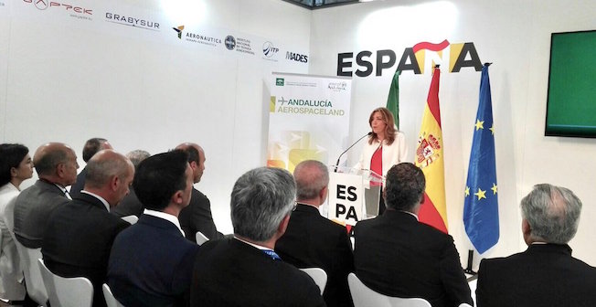 La presidenta de la Junta, Susana Díaz, ha presidido la presentación, en la 52º edición del Salón Internacional de la Aeronáutica y el Espacio-París Le Bourget, del Centro de Innovación en Tecnologías de Fabricación Avanzada Aeronáutica y Naval de Cádiz (CFA), un centro especializado que aunará los procesos de producción de ambos sectores y que supondrá una inversión de 25 millones en el marco de la Iniciativa Territorial Integrada de la provincia de Cádiz (ITI).