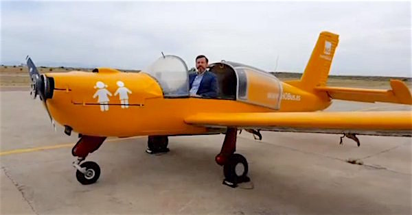 Este martes al mediodía en el aeródromo de Casarrubios del Monte, al suroeste de Madrid, la organización conservadora Hazte Oír, presentó el avión con el que pretenden sobrevolar la costa mediterránea de la península “volando desde Girona hasta Cádiz, para concienciar a los españoles sobre una ley totalitaria que presentó Podemos, una Ley mordaza LGTBI”, según palabras de su presidente, Ignacio Arsuaga Rato. / Esta noticia se puede leer en www.lavanguardia.com.