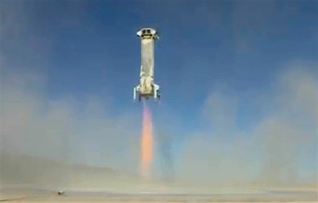 Por su parte, el cohete continuó aproximadamente unos siete minutos más en vuelo, durrante los cuales ganó altura. Pero una vez quedó aligerado de peso por el consumo de combustible descendió y se posó en la plataforma. Con este descenso era la quinta prueba que Blue Origin hacía con el mismo cohete con éxito.