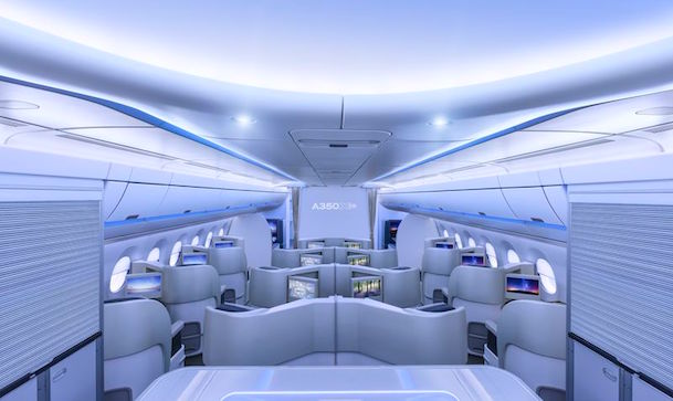 Cuatro son los factores de la nueva cabina: confort, ambiente, servicio y diseño. El fabricante subraya que el espacio de las cabinas favorecerá el relax del pasajero, a la vez que será «estimulante, hermosa y funcional. Los maleteros serán más grandes, los lavabos más amplios y modernos, al igual que los asientos y los pasillos. Debajo de los asientos no habrá «obstáculos» para los pies.
