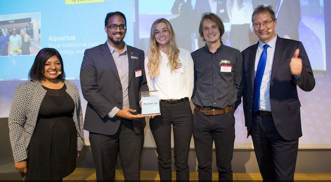 Los segundos clasificados, Team Aquarius del Royal Melbourne Institute of Technology (RMIT) de Australia obtuvieron un premio de 15.000 euros por su solución radical que convierte los aviones comerciales en una herramienta para la rápida extinción de incendios forestales.