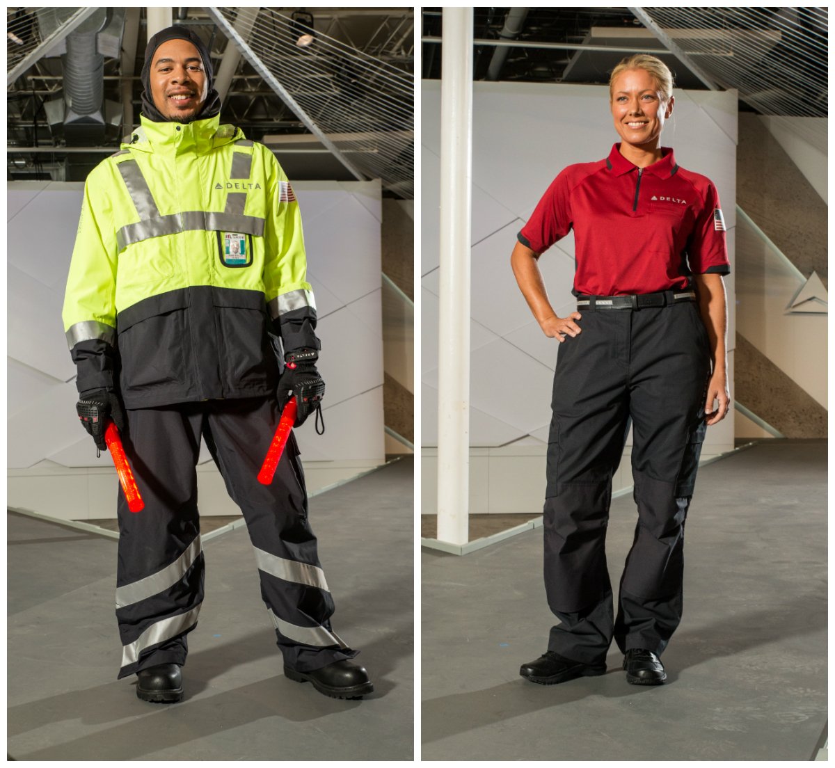 Hay en ellos una serie de detalles, como una blusa para las tripulantes de cabina con un cuello que recuerda a un ala y el emblemático logotipo de Delta, haciéndose visible en toda la colección. Los empleados que no están en contacto directo con el cliente vestirán con prendas reflectantes fácilmente identificables.