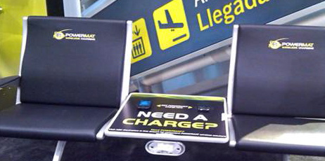 Las esperas en los aeropuertos serán revitalizantes para los teléfonos móviles y otros aparatos como cámara de fotos, MP3, portátil, tablet, libros electrónicos, etc. ) porque la firma Powermat está a punto de comercializar un sistema de asientos equipado para que, dejando en una superficie plana el aparato, éste se recargue de forma inalámbrica. El equipamiento se presentará a mediados de este mes en el Mobile World Congress que se celebrará en Barcelona a partir del día 14.