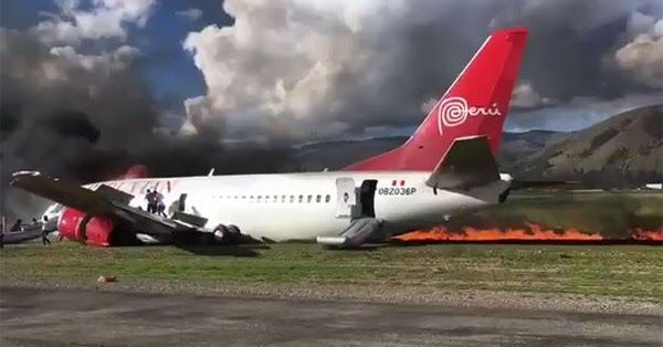 Un Boeing 737 de Peruvian Airlines se incendia tras un accidentado aterrizaje en el aeropuerto de Jauja